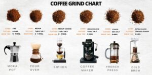 Untuk memudahkan visualisasi, gambaran tekstur gilingan kopi dari setiap tingkat kehalusan biasanya sebagai berikut: